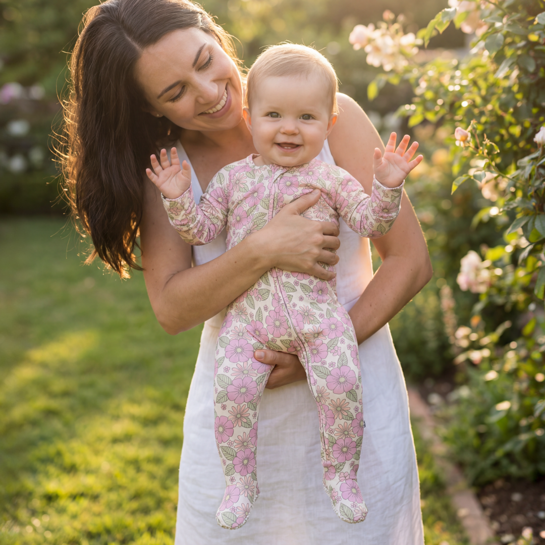 My granddaughter looks adorable in all of sweet bamboo zipper footies