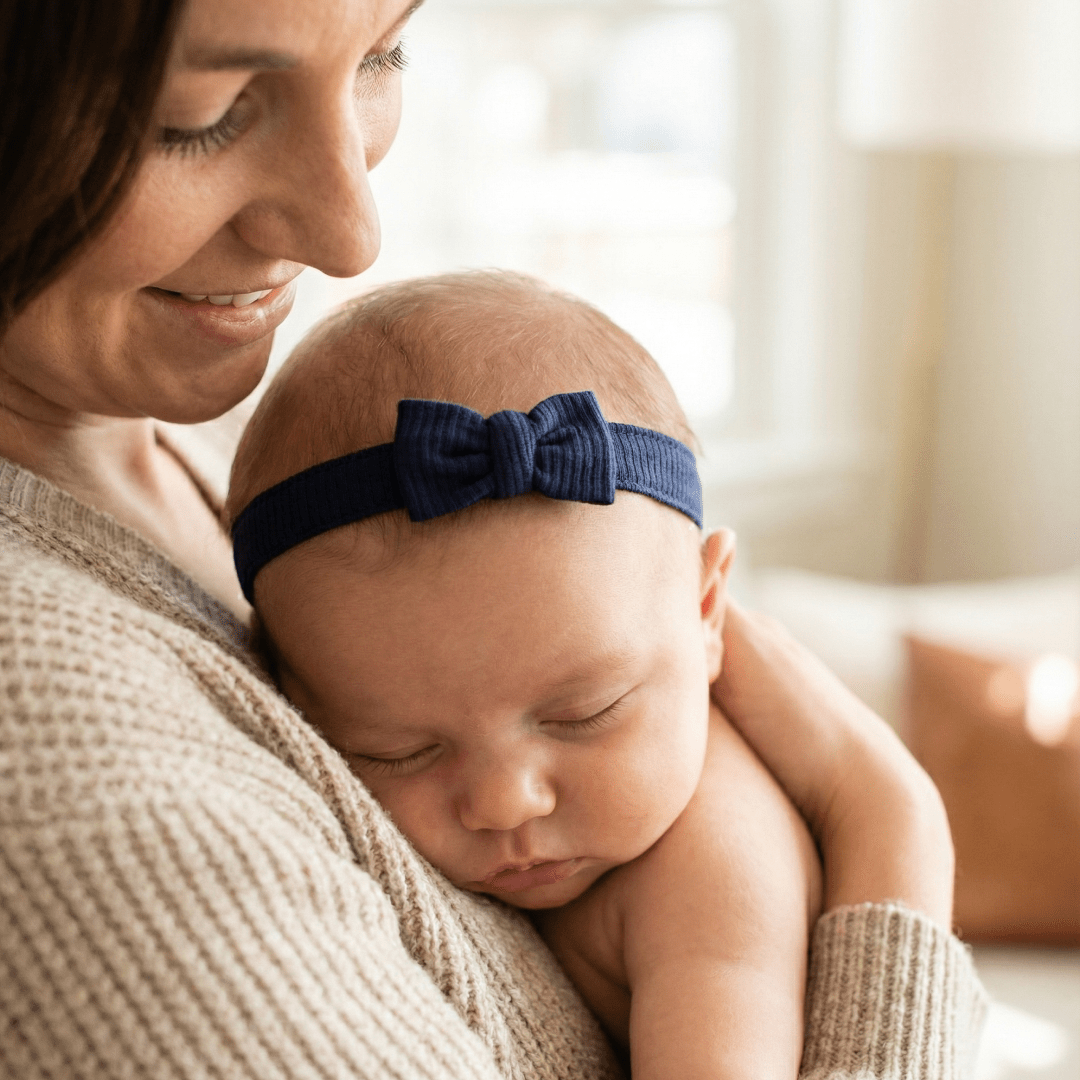 Tiny Bow Headband Navy Blue Rib Accessories sweetbambooclothing