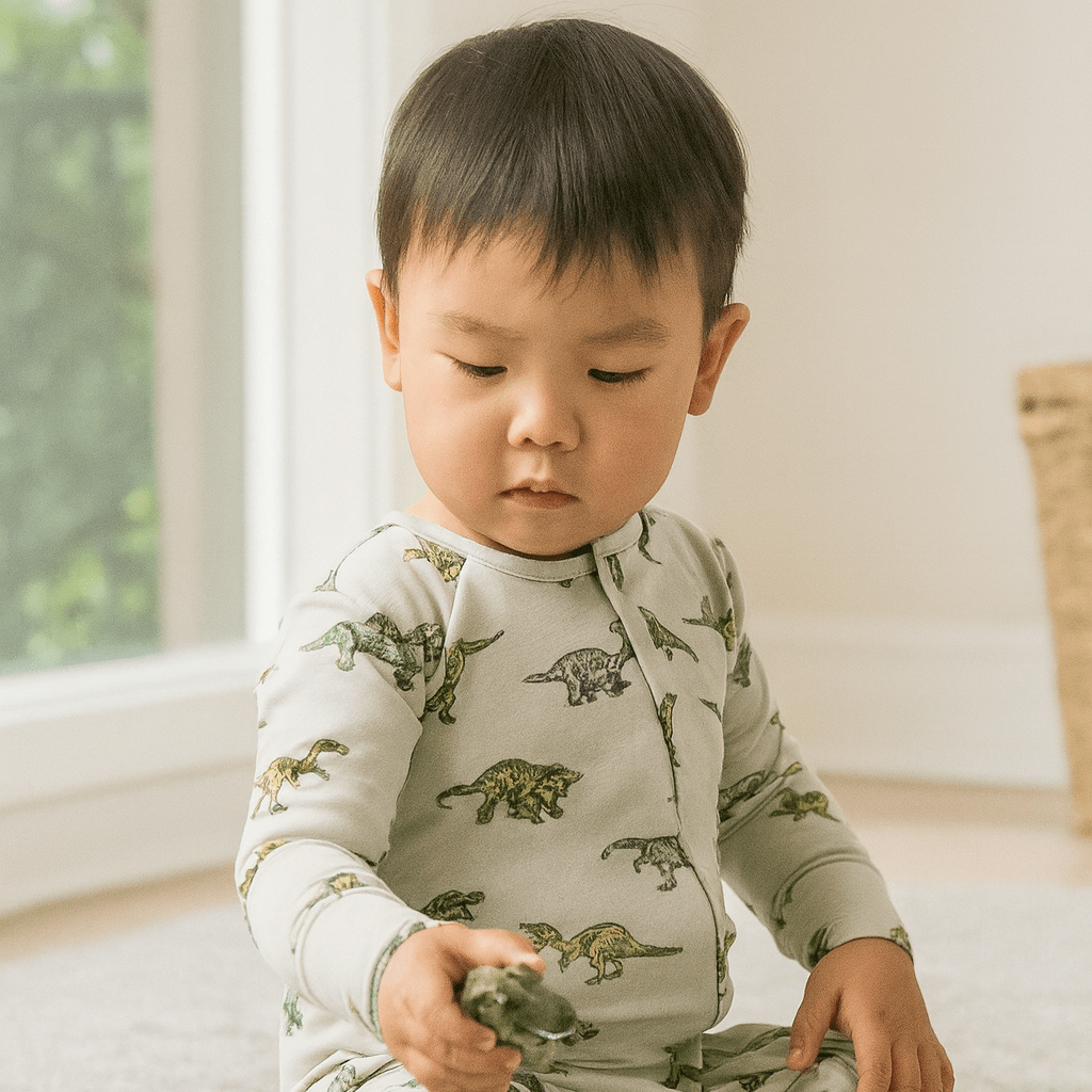 Ask and you shall receive. This yummy footie is equipped with a smooth 2-way zipper, silicone grips on the foot pads and fold-over handcuffs. Plus our silky-soft fabric hugs in all the right places to show off those baby curves.