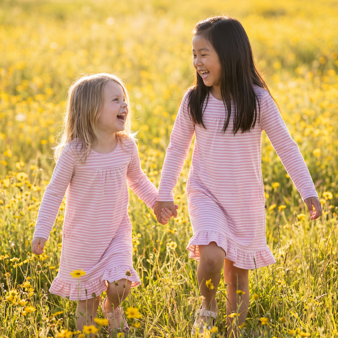 Our Boho Dress is perfect for the girl who prefers a little more wiggle room and a little extra length. Throw in ruffles and pockets and it becomes impossible to resist!