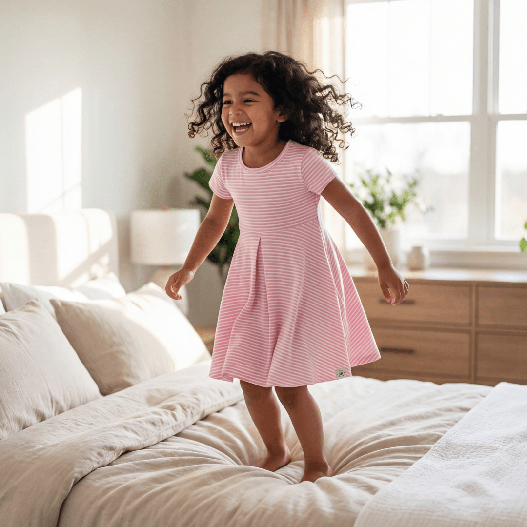 Pink Stripe Bamboo Cap Sleeve Swirly Girl Dress