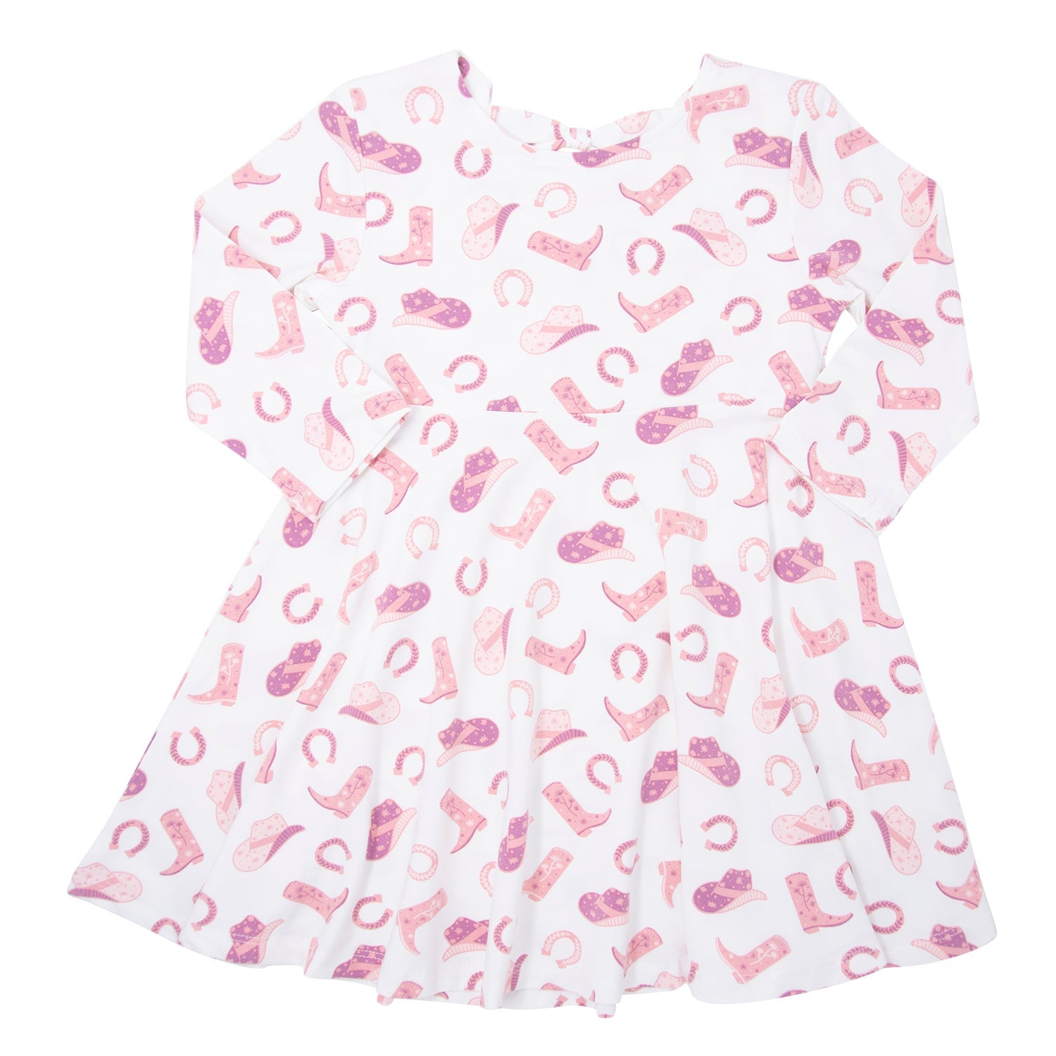 This dress is sure to be an everyday go-to! Easy to pick out and even easier to wear! Say goodbye to the dress-up struggle with this sweet, twirly dress!
