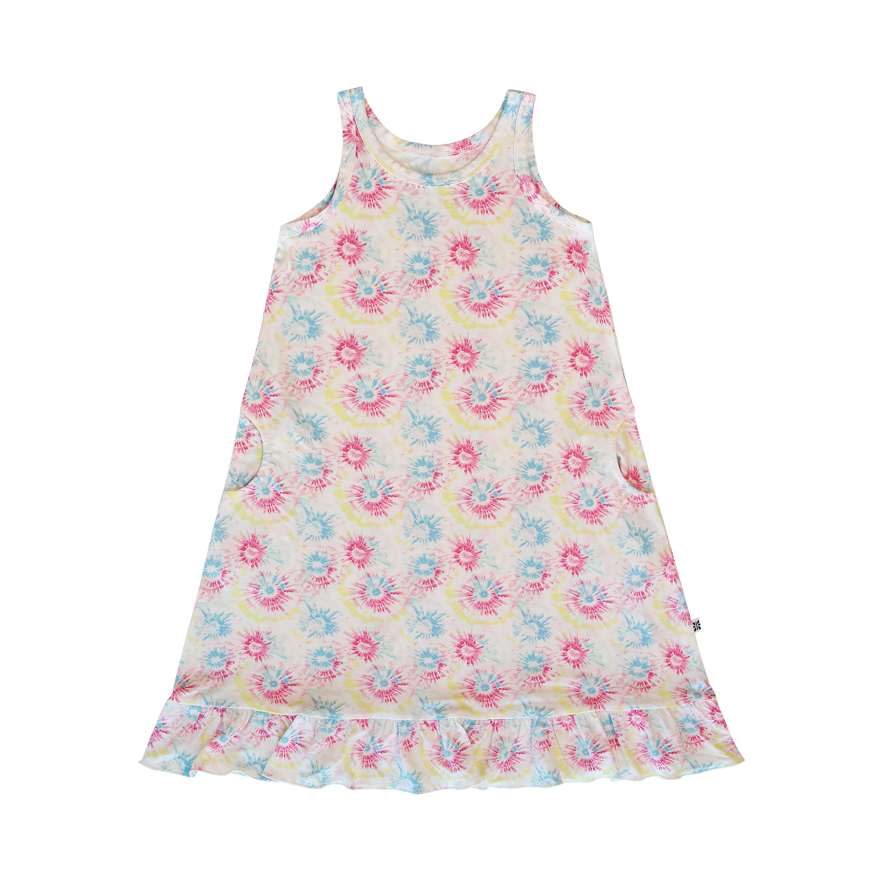 The Summer Boho screams comfort! Silky bamboo fabric finished in a loose fitting silhouette with peek-a-boo pockets and ruffle trim. She'll become a daydream believer overnight.