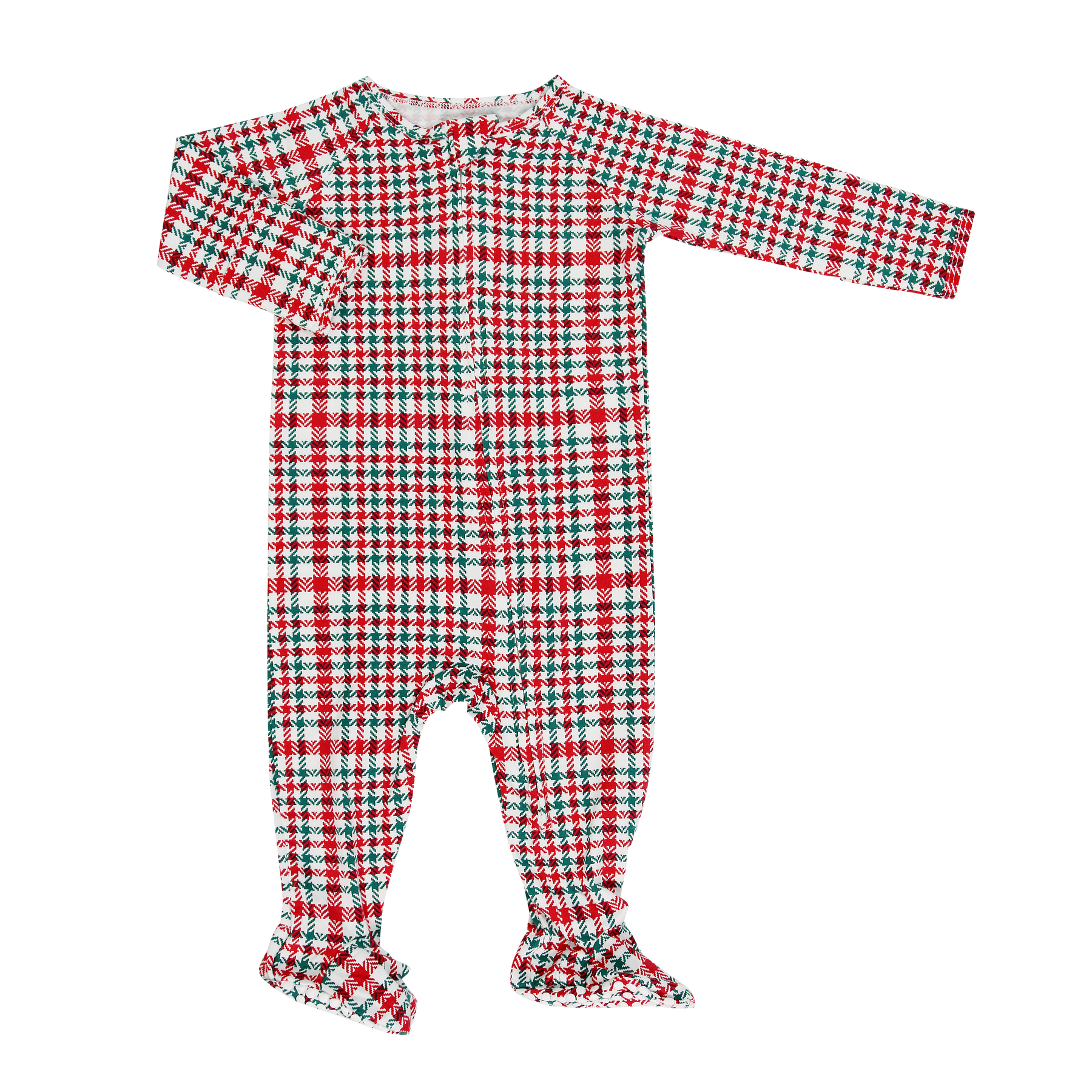 Red Tartan Zipper Footie Footies sweetbambooclothing