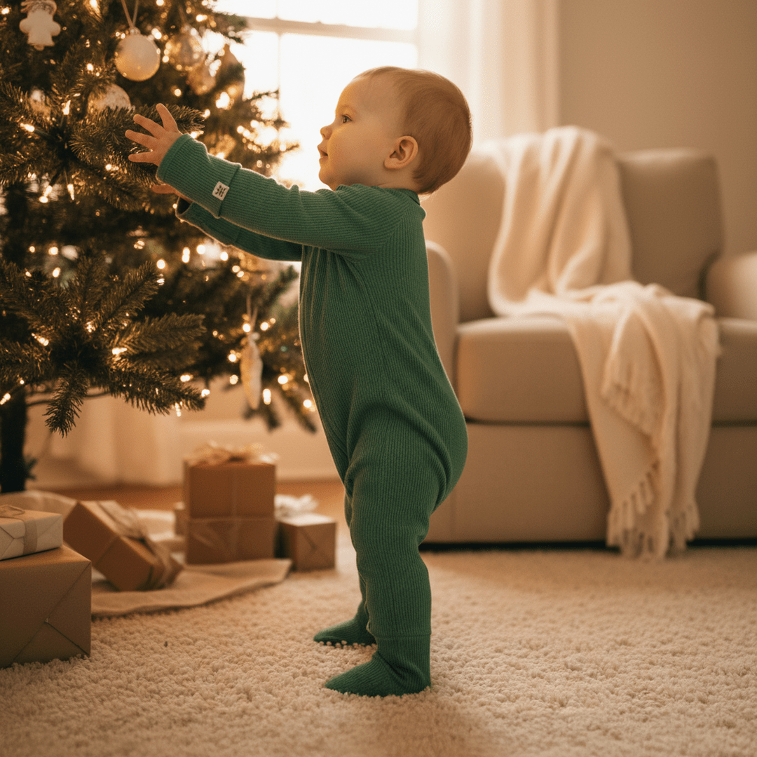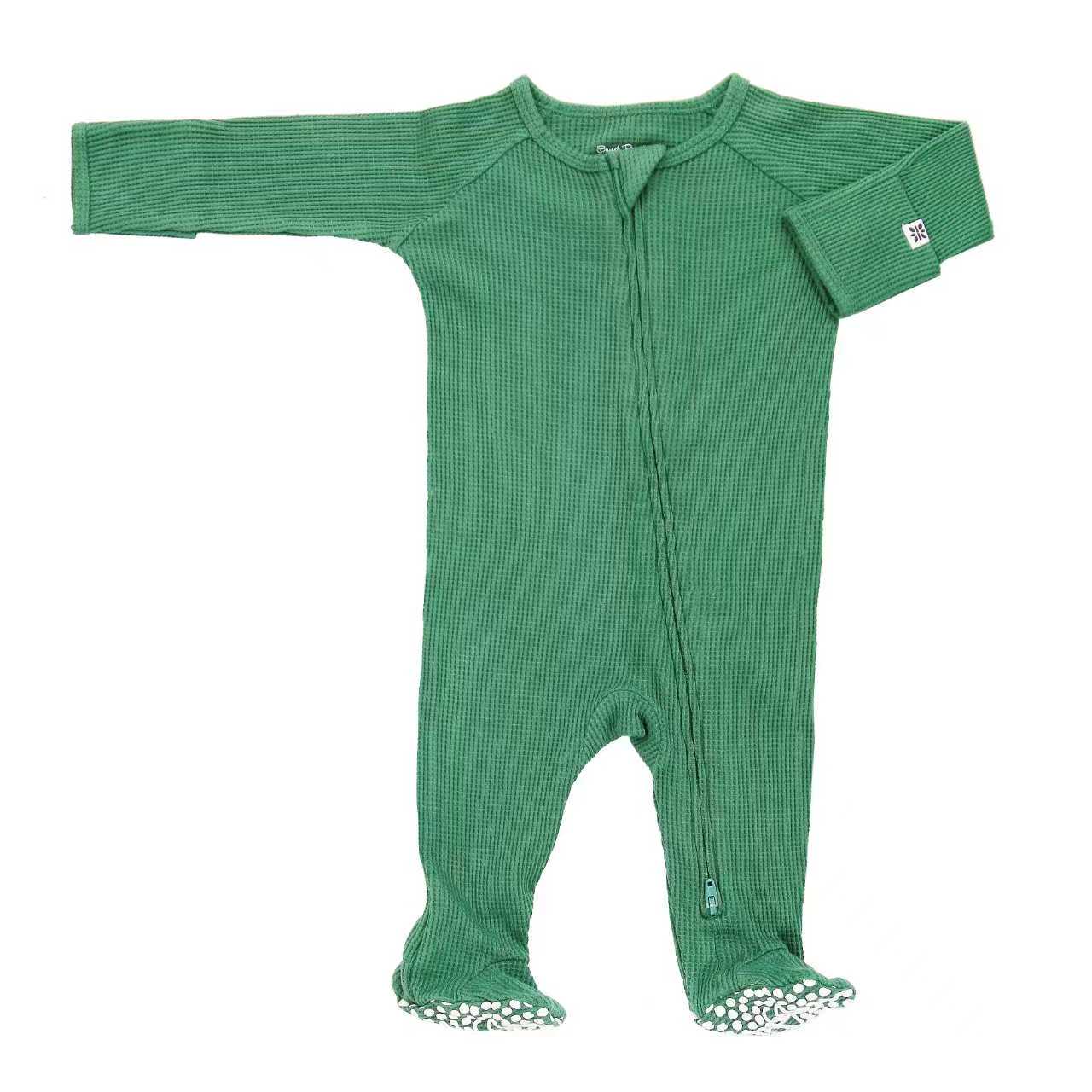 Alpine Green Waffle Zipper Footie Footies sweetbambooclothing