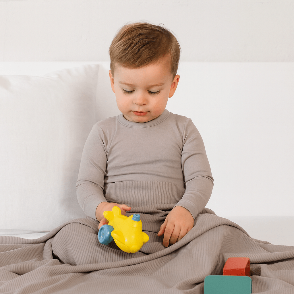 This blanket feels like a silky-soft cloud with two layers of our silky Luxaboo Ribbed surrounding a lining of polyester. Great for every nursery, toddler beds, and strollers. Great gift option!