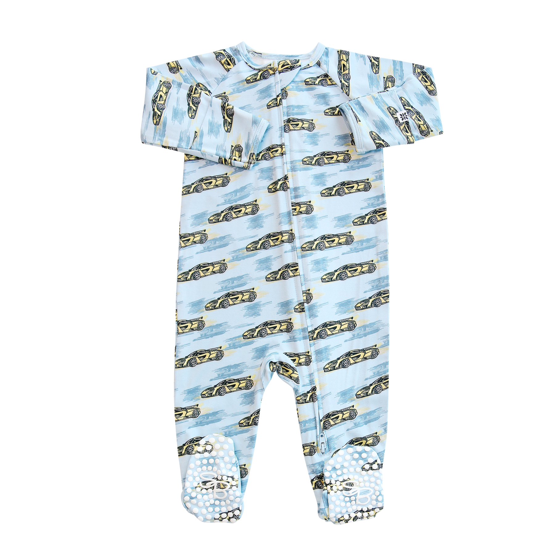 Ask and you shall receive. This yummy footie is equipped with a smooth 2-way zipper, silicone grips on the foot pads and fold-over handcuffs. Plus our silky-soft fabric hugs in all the right places to show off those baby curves.