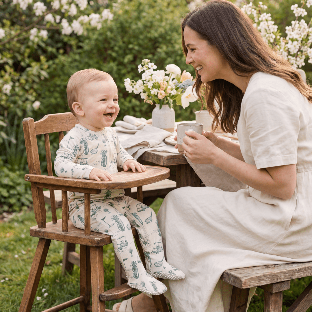 Ask and you shall receive. This yummy footie is equipped with a smooth 2-way zipper, silicone grips on the foot pads and fold-over handcuffs. Plus our silky-soft fabric hugs in all the right places to show off those baby curves.