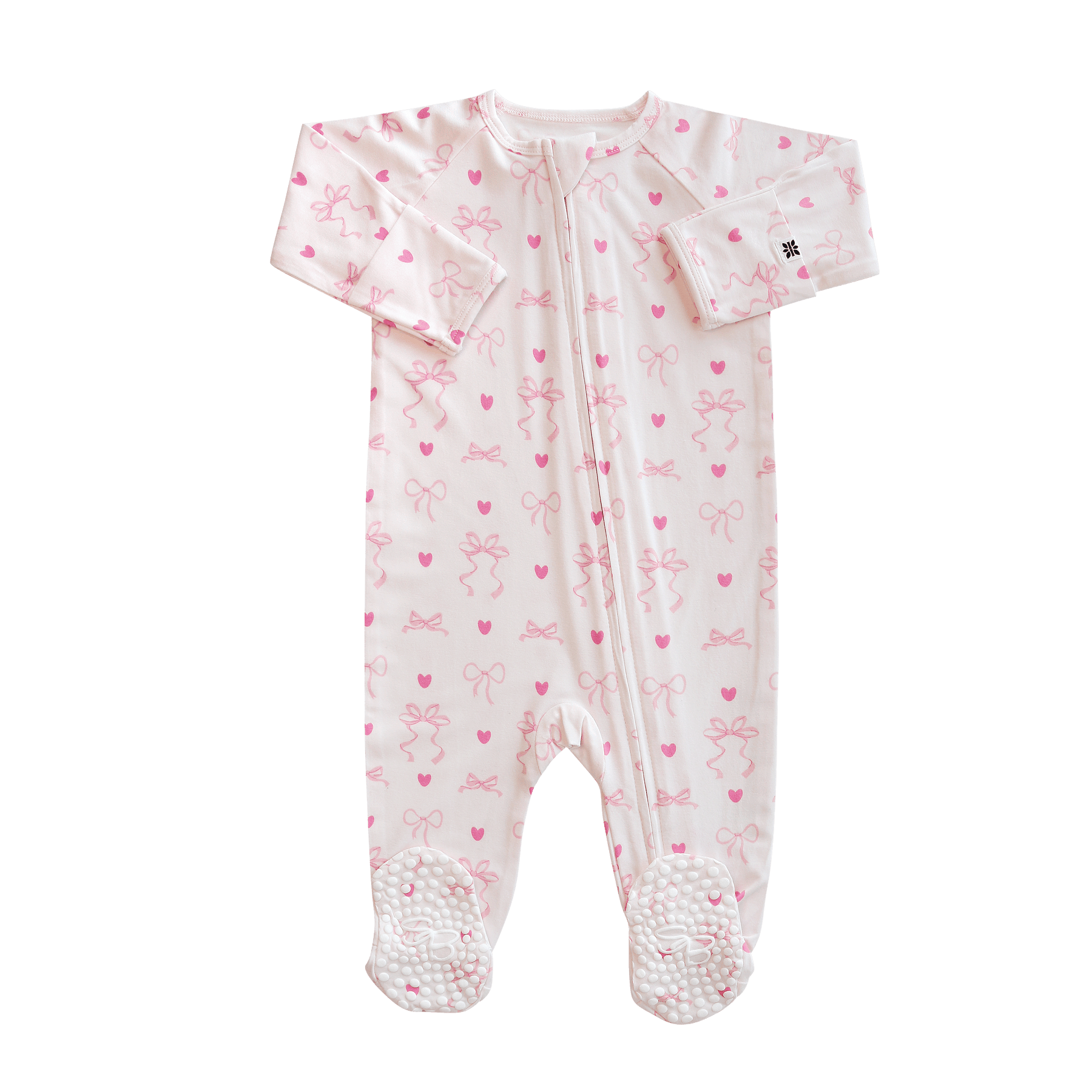 Ask and you shall receive. This yummy footie is equipped with a smooth 2-way zipper, silicone grips on the foot pads and fold-over handcuffs. Plus our silky-soft fabric hugs in all the right places to show off those baby curves.