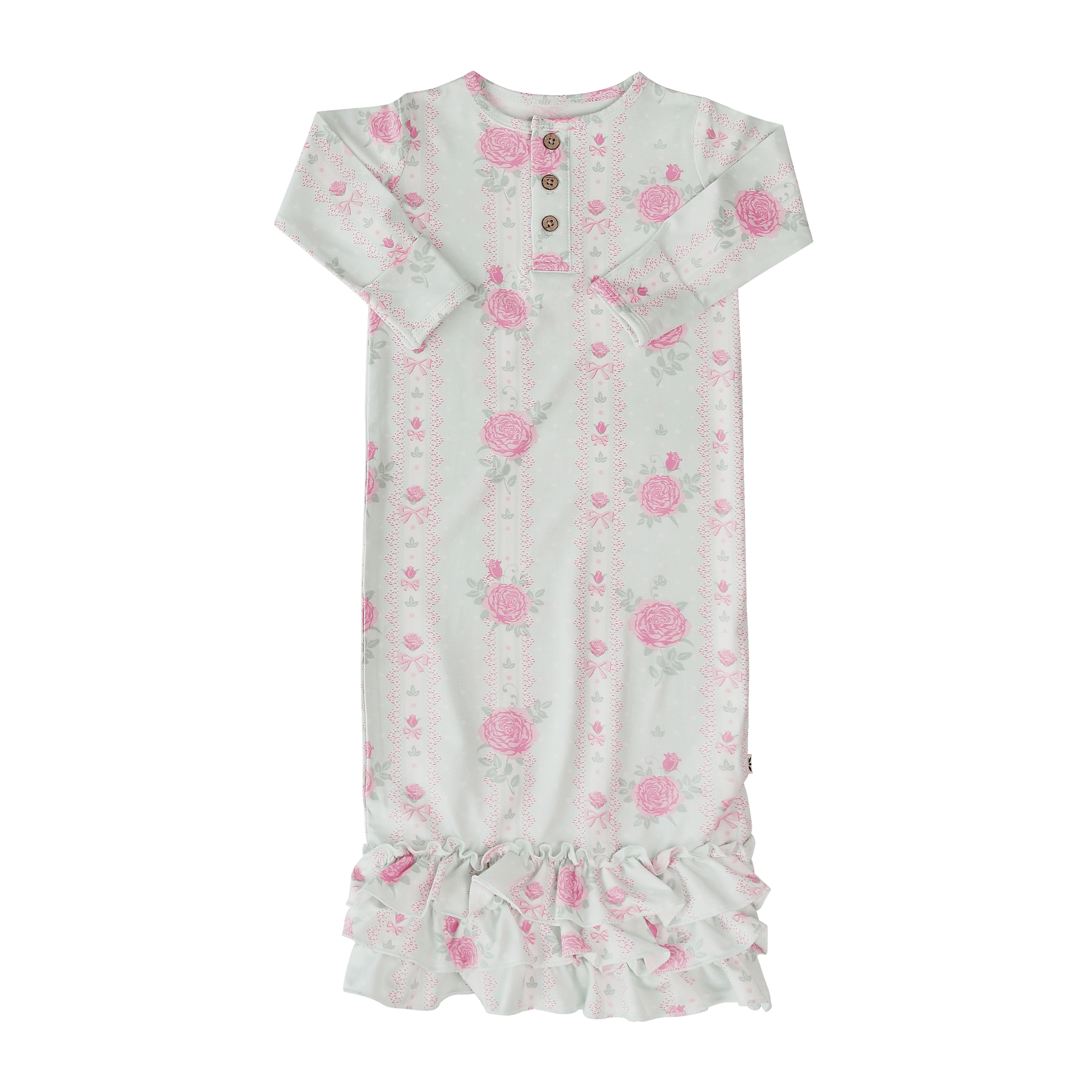 Ruffle Receiving Gown - Roses and Lace Gowns sweetbambooclothing