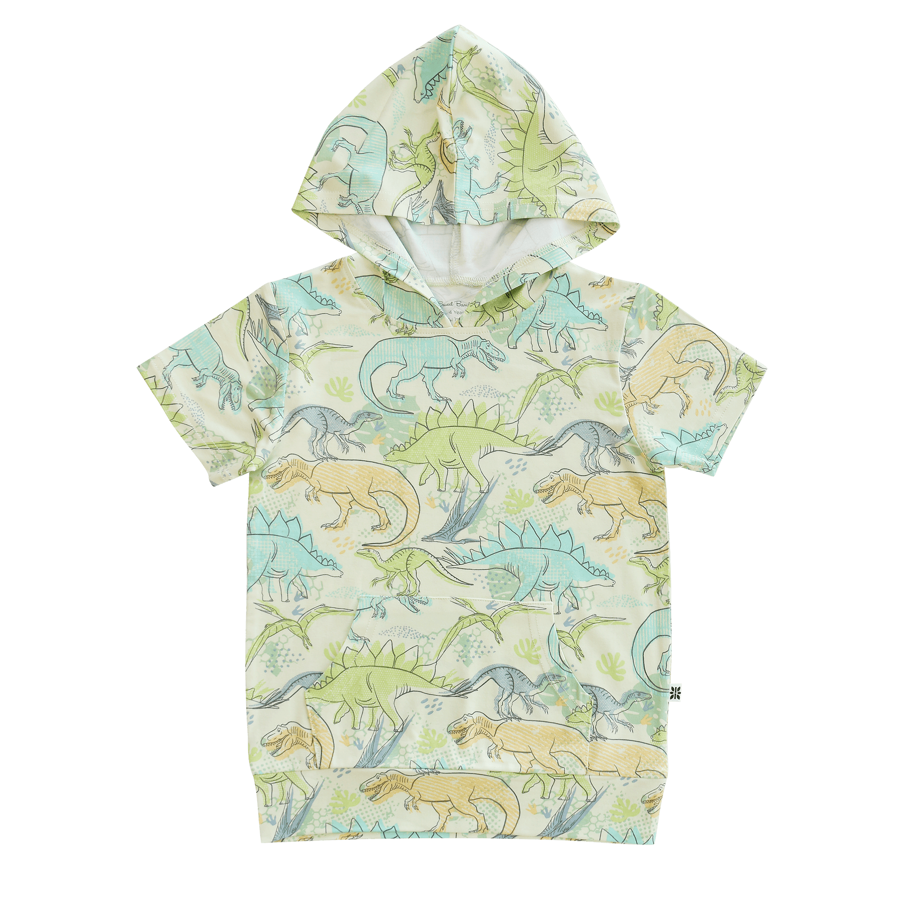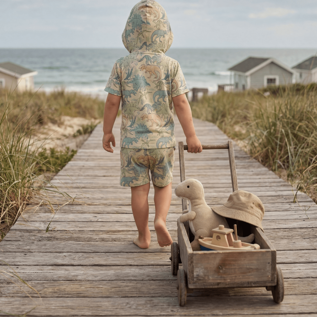 Short Sleeve Hooded Top - Neon Dino Tops & Bottoms sweetbambooclothing