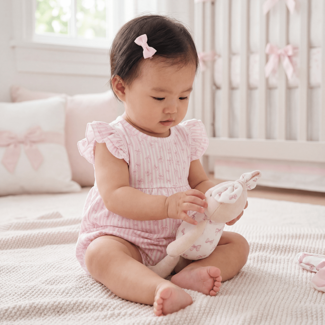 This darling day romper elevates the cuteness of each tumble and fumble. Your sweet cheeked little cutie pie will love this summer romper.