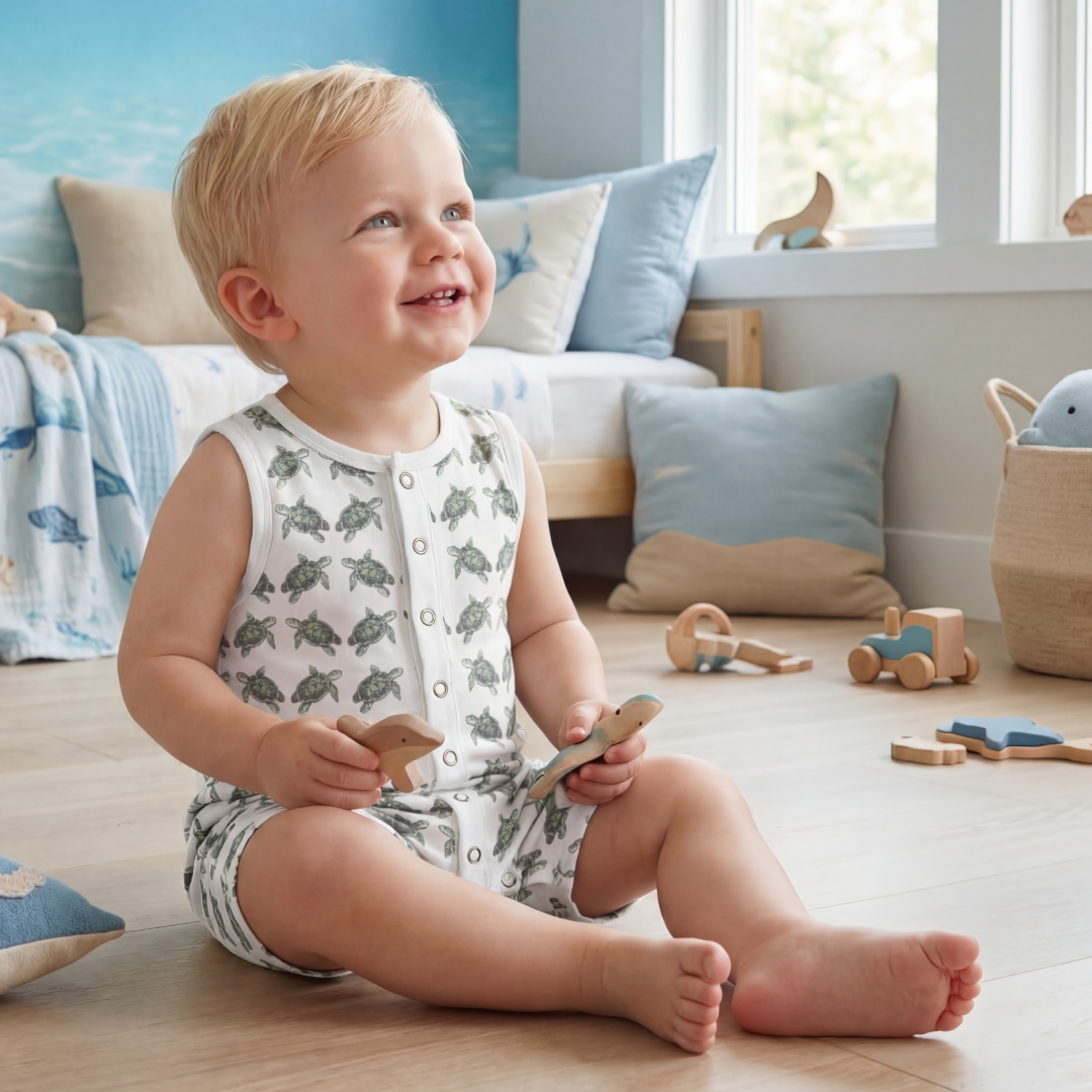 Sea Turtle Tank Romper Rompers sweetbambooclothing